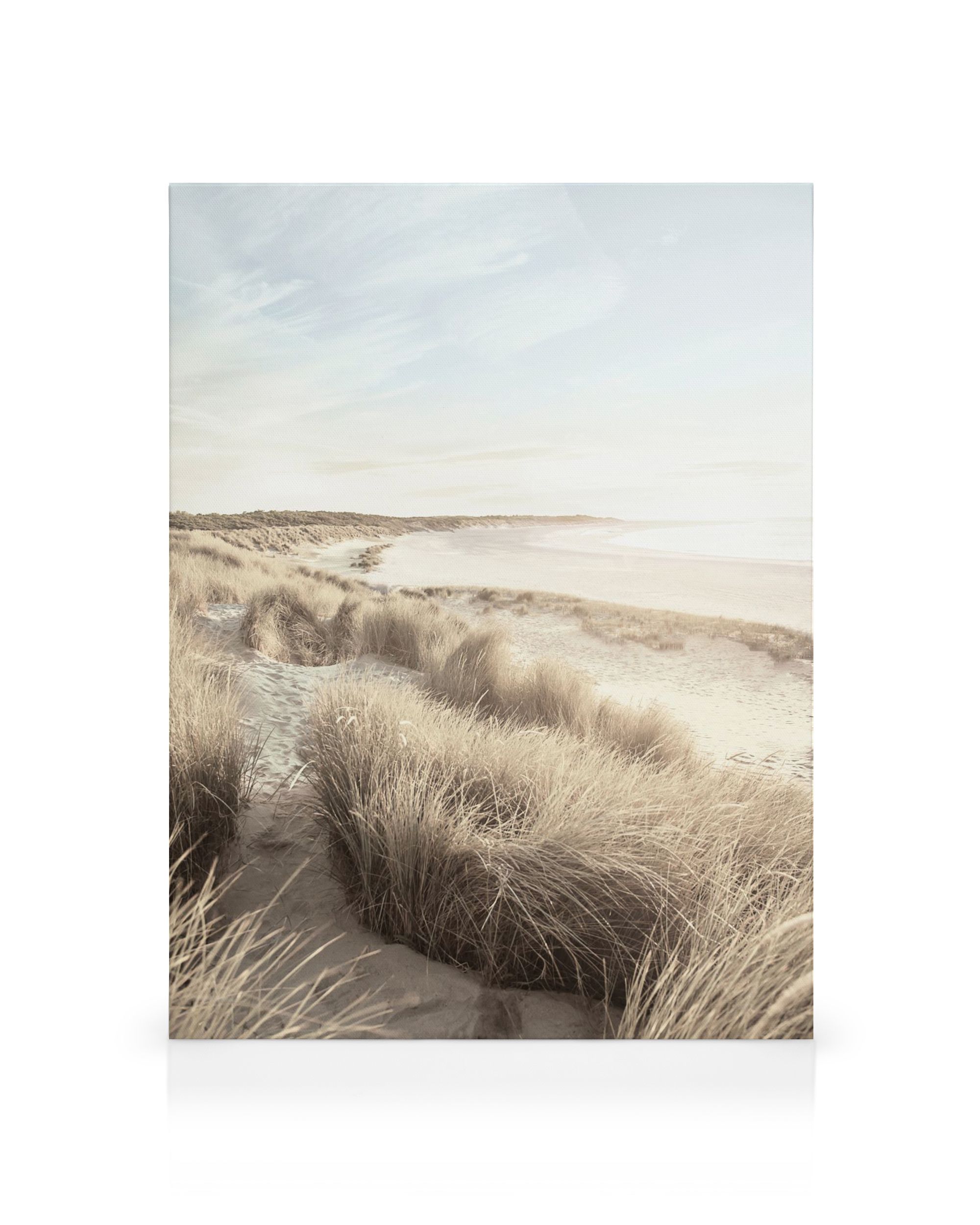 Desde 9,07 €Un idílico lienzo capturando una tranquila playa con altos pastos pálidos en primer plano, arena prístina y un brillante cielo lleno de suaves nubes azules y blancas. Este arte mural evoca la sensación serena y pacífica de una orilla calmada.